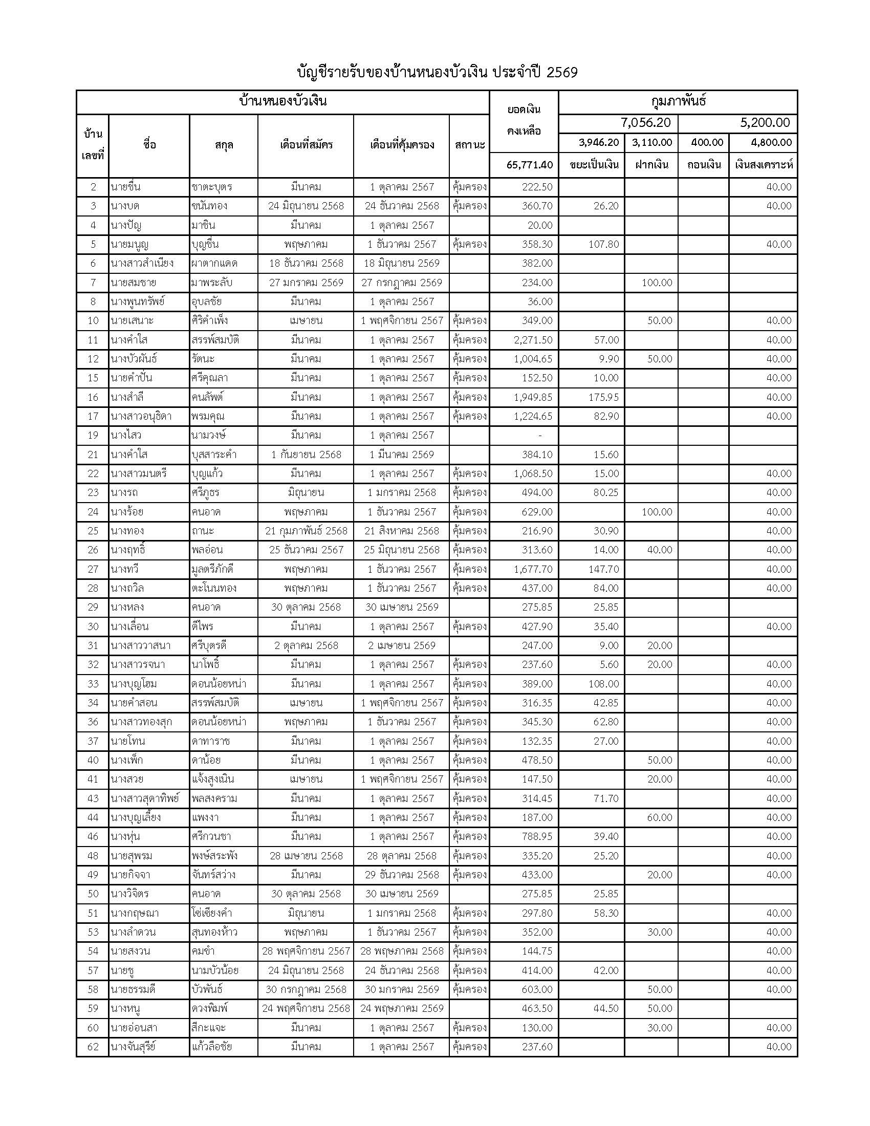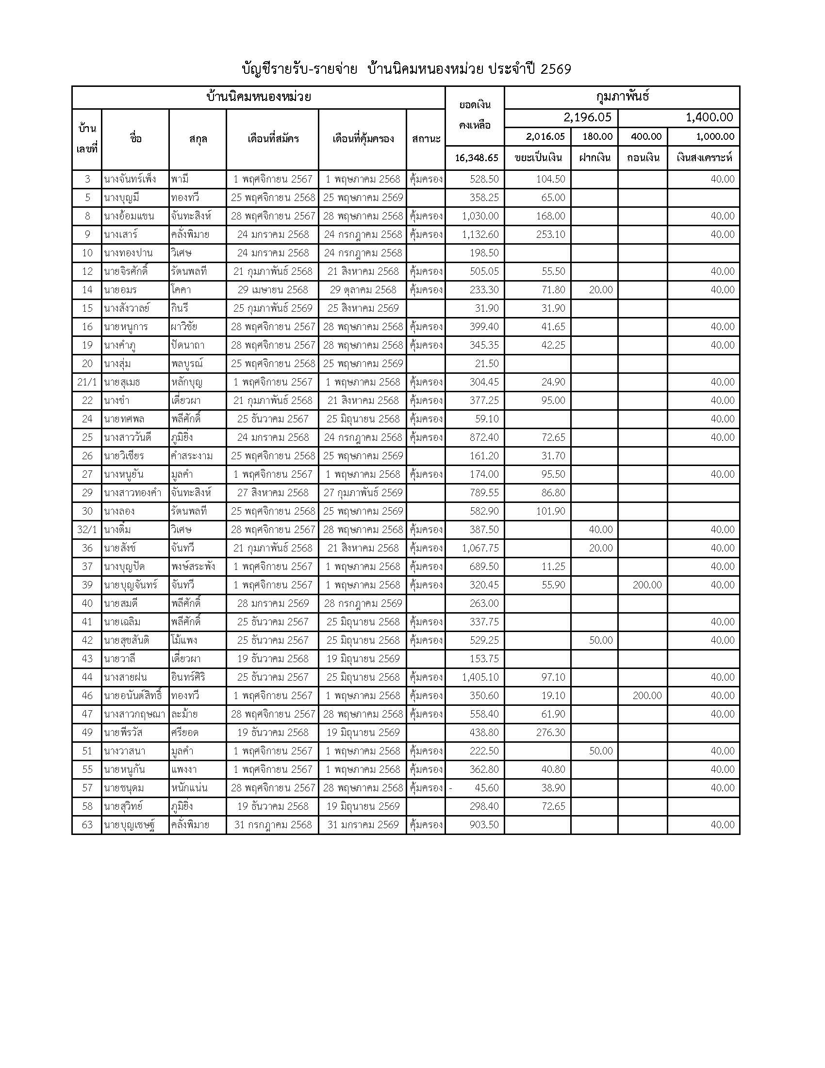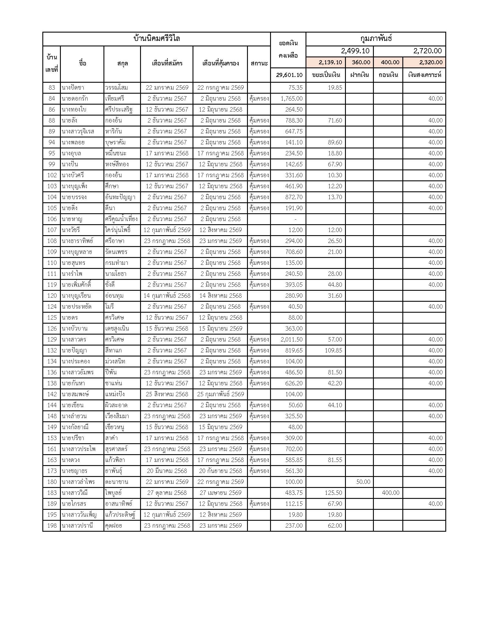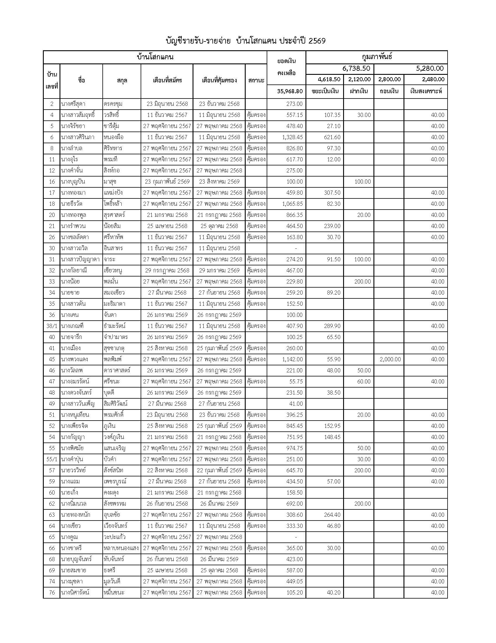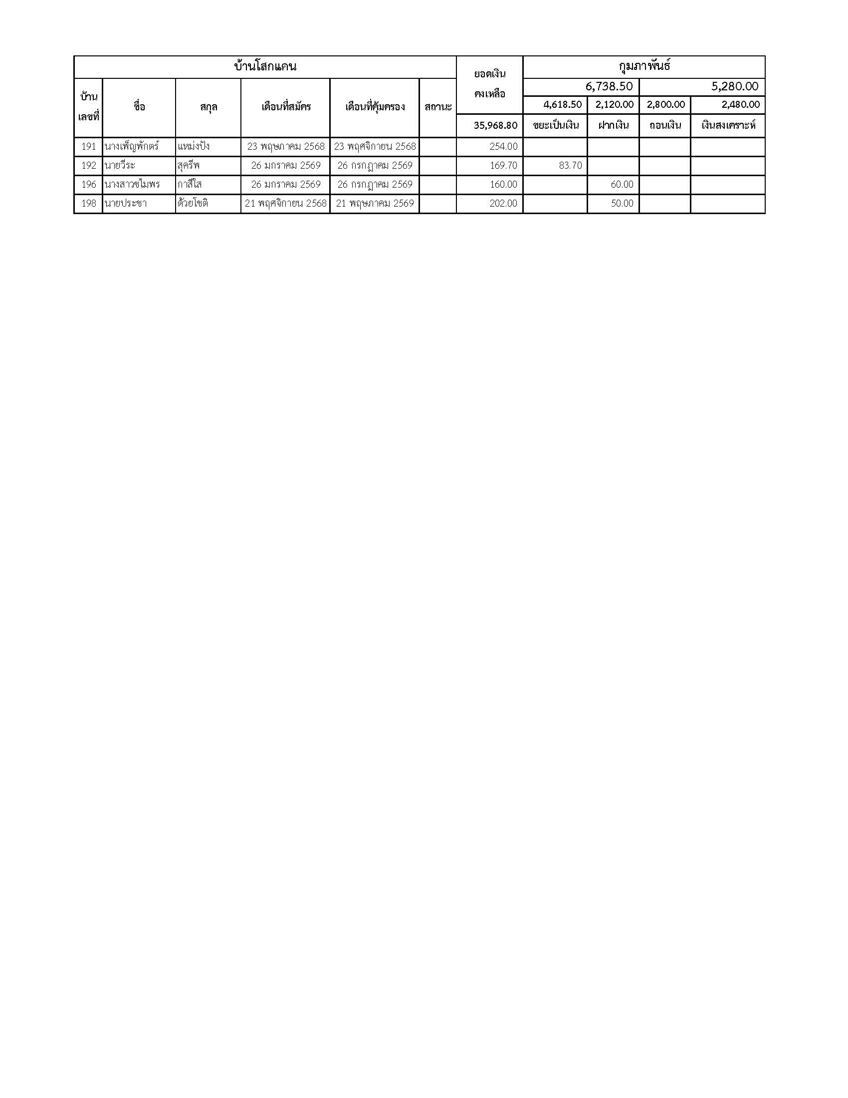 ยอดรับซื้อขยะ ประจำเดือนกุมภาพันธ์ 2569