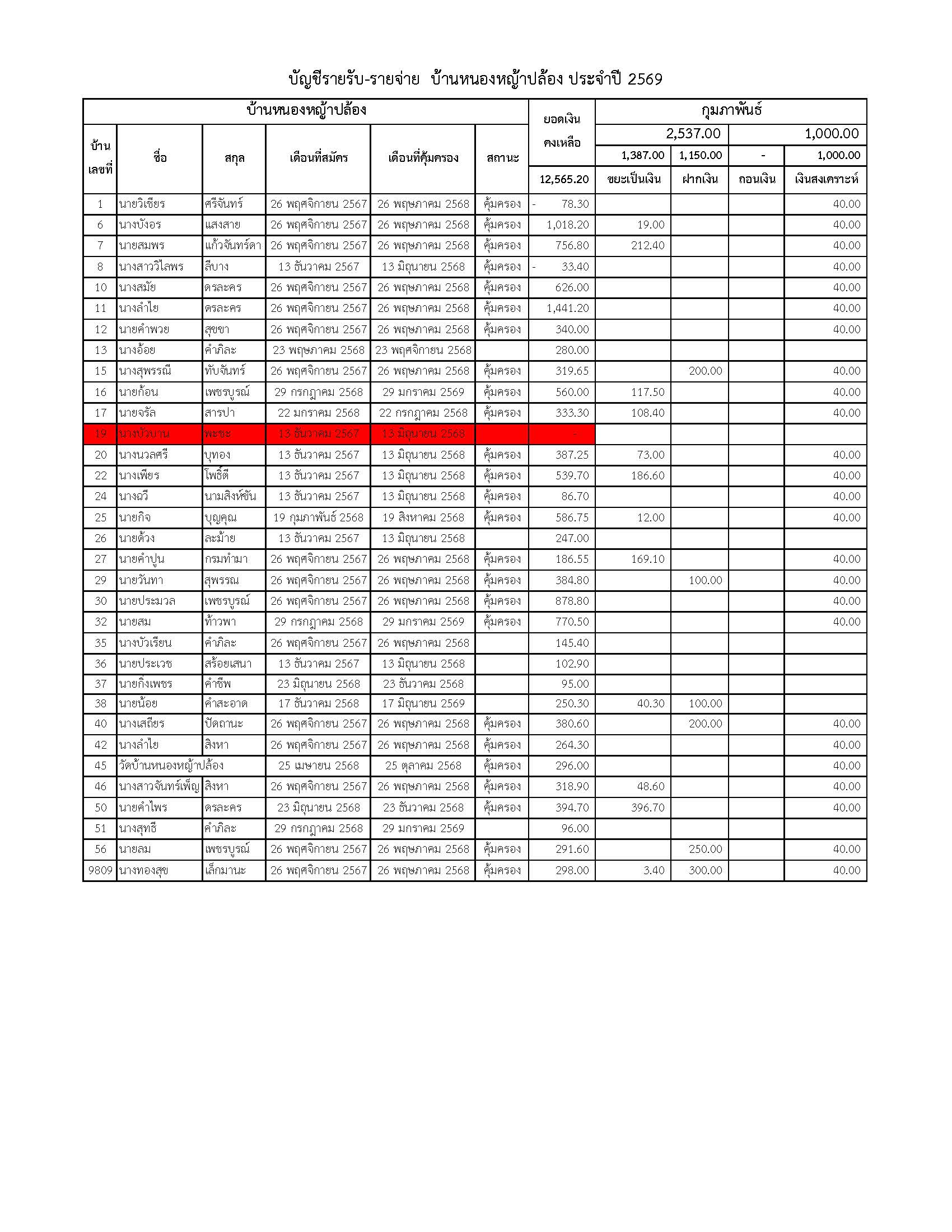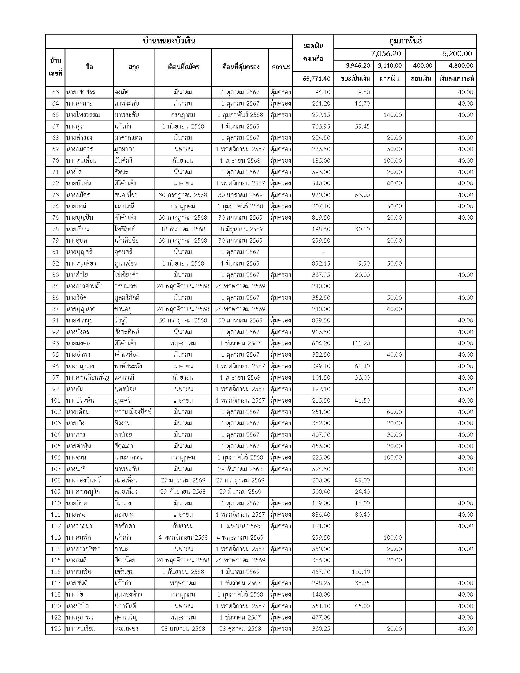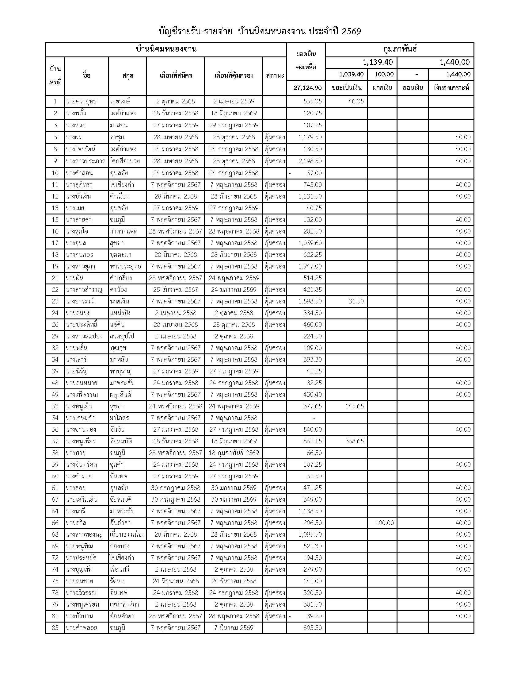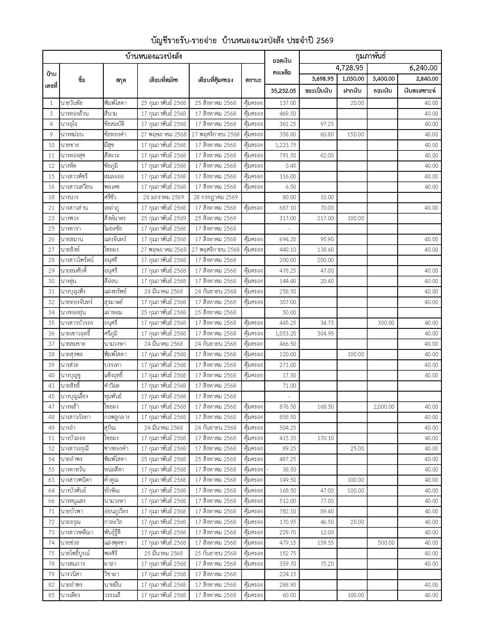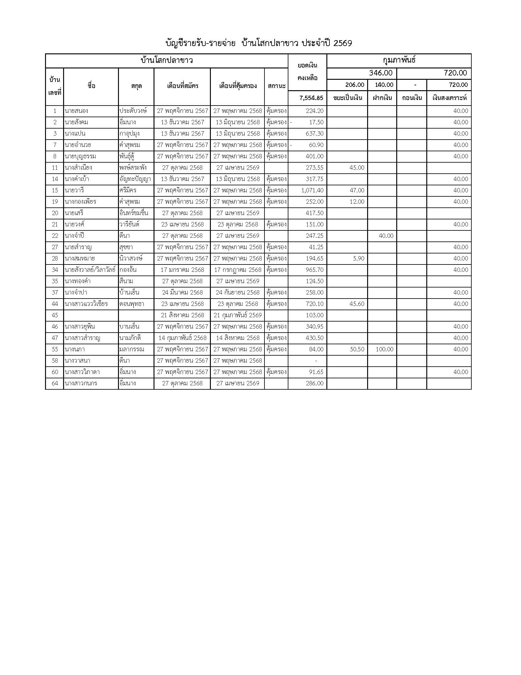 ยอดรับซื้อขยะ ประจำเดือนกุมภาพันธ์ 2569