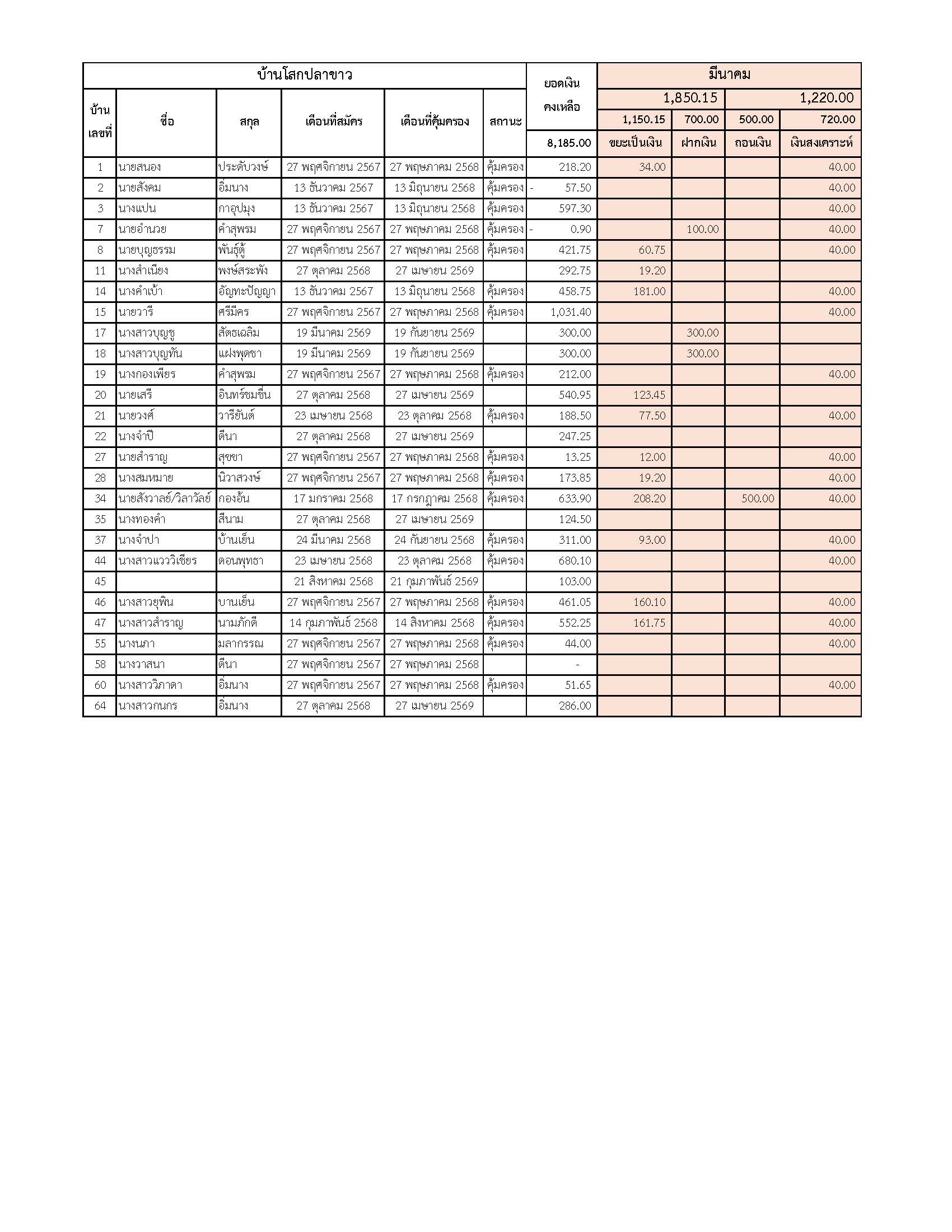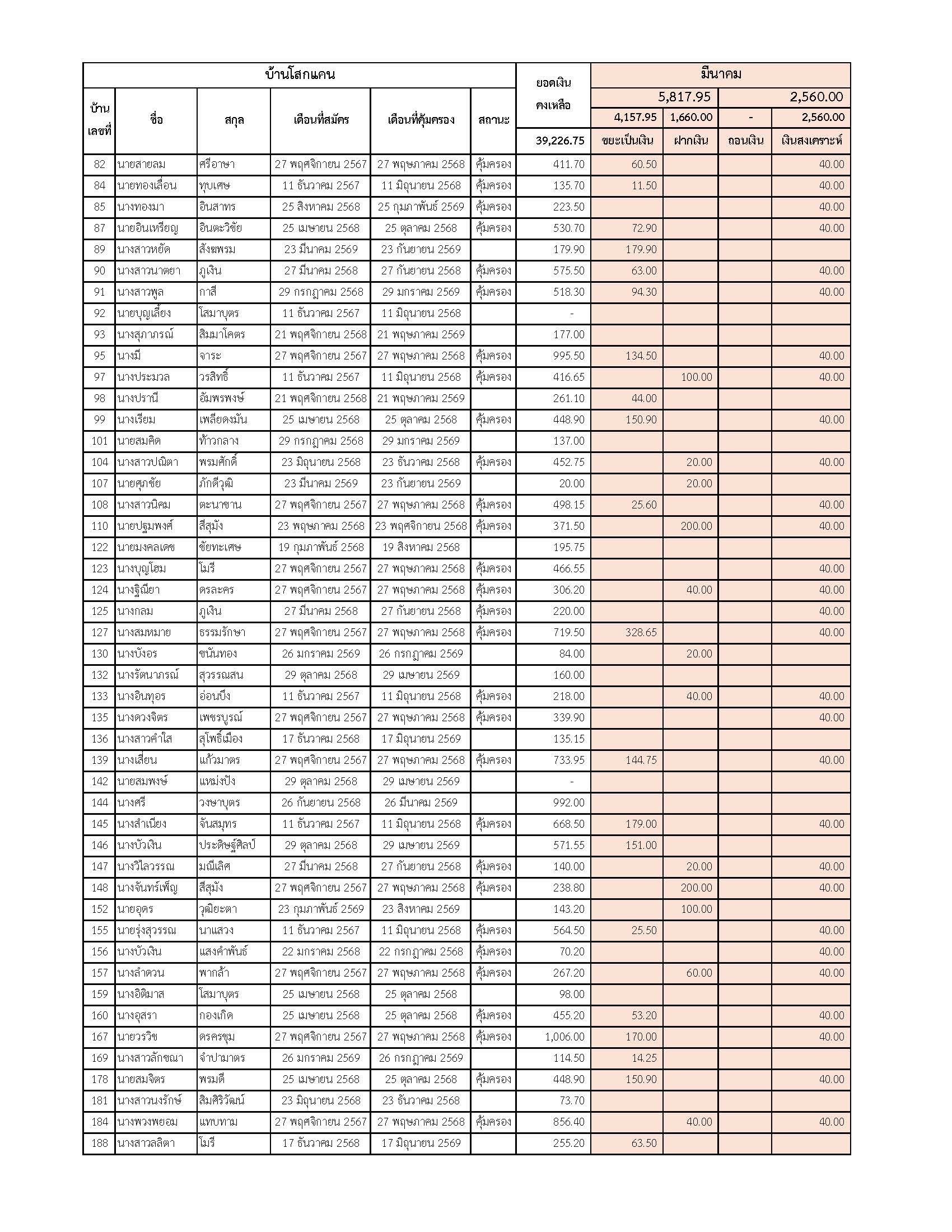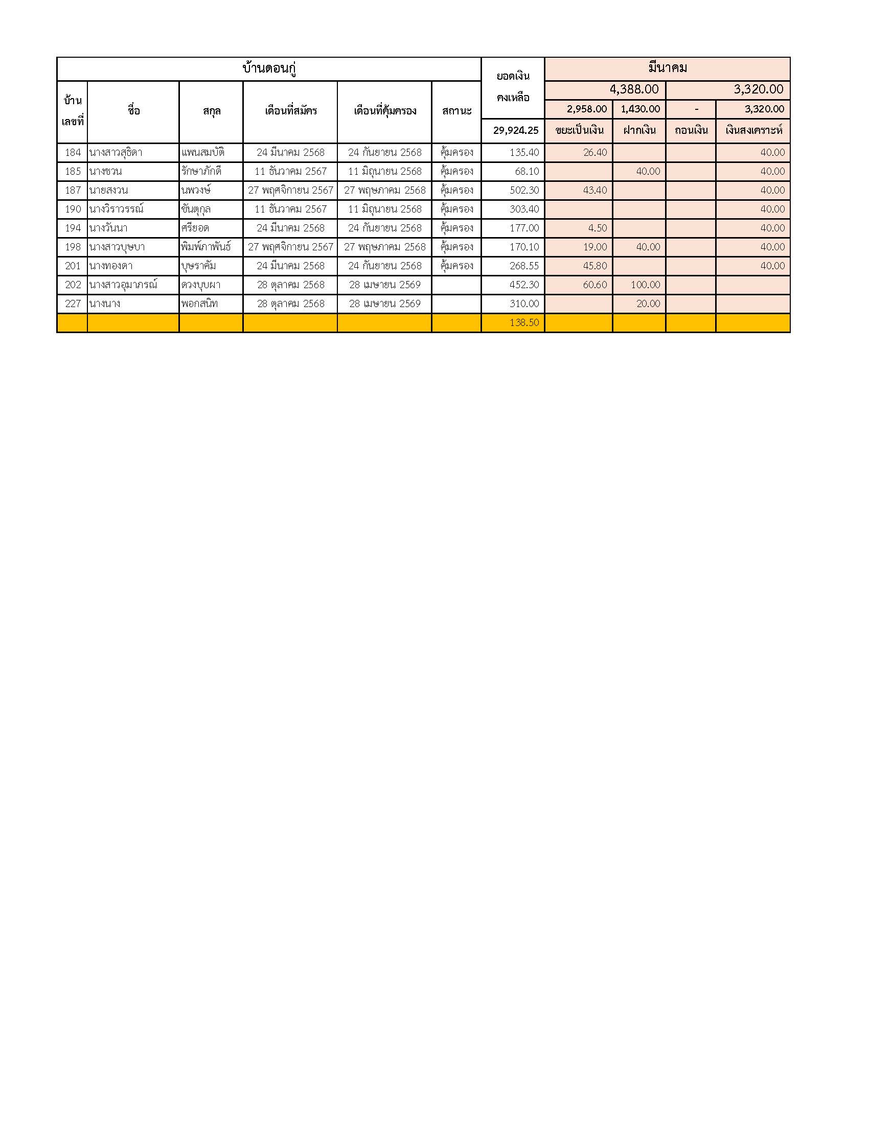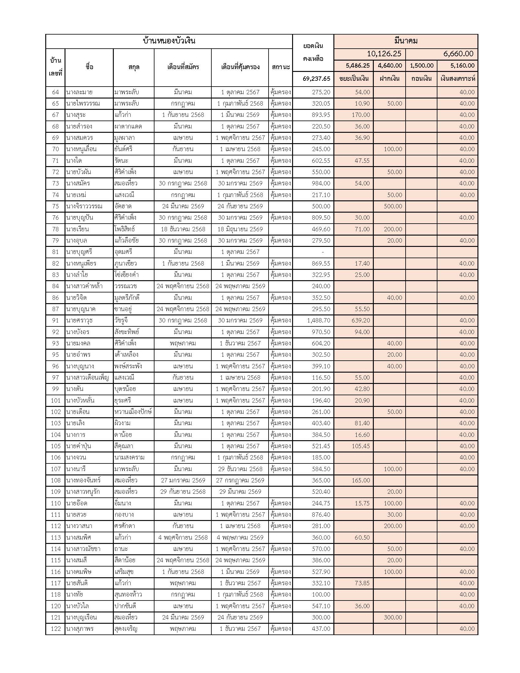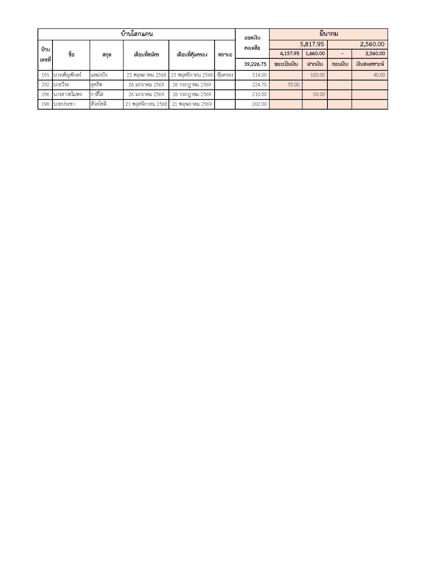 ยอดรับซื้อขยะ ประจำเดือนมีนาคม 2569