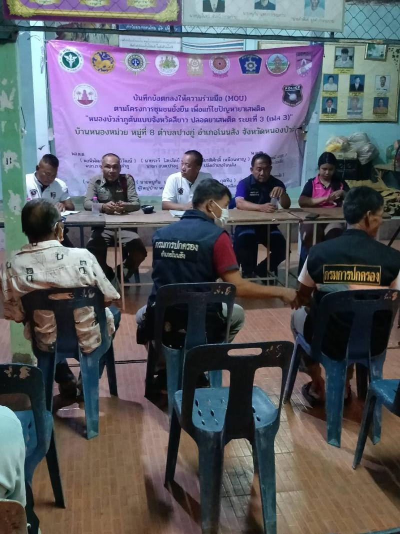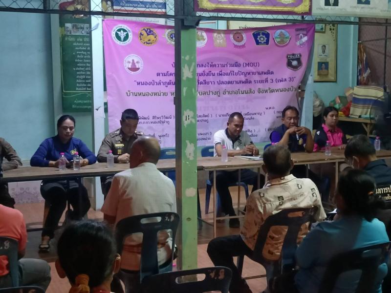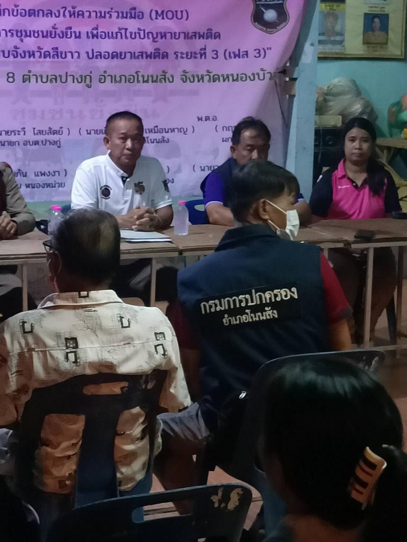 รายละเอียด : วันอังคารที่ 11 กรกฎาคม 2566 เวลา 19.00 น. สถานตำรวจภูธรโนนสัง ปกครองอำเภอโนนสัง ฝ่ายปกครองตำบลปางกู่ รพ.สต.โสกก้านเหลือง และ อบต.ปางกู่ ร่วมกันดำเนินโครงการชุมชนยั่งยืน เฟส 3 ที่บ้านนิคมหนองหม่วย เพื่อแก้ไขปัญหายาเสพติดในพื้นที่