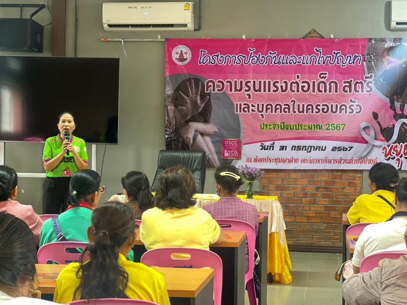 รายละเอียด : กองสวัสดิการสังคม องค์การบริหารส่วนตำบลปางกู่ ได้ดำเนินการจัดโครงการป้องกันและแก้ไขความรุนแรงต่อเด็ก สตรี และบุคคลในครอบครัว ประจำปีงบประมาณ 2567 เพื่อสร้างเครือข่ายในการเฝ้าระวังป้องกันความรุนแรงในครอบครัว และร่วมกันหาวิธี หรือแนวทางในการป้องกันและแก้ไขความรุนแรงที่อาจเกิดขึ้นในครอบครัวร่วมกับชุมชน ในวันพุธ ที่ 31 กรกฏาคม 2567