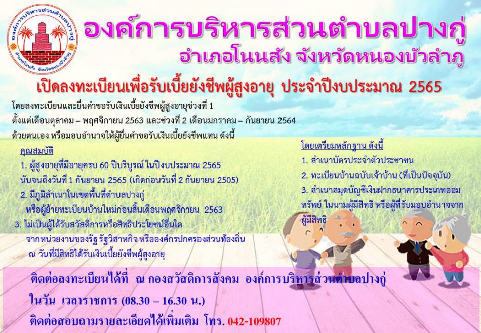 ประชาสัมพันธ์การรัลงทะเบียนเพื่อรับเบี้ยยังชีพผู้สูงอายุ ประจำปีงบประมาณ 2565