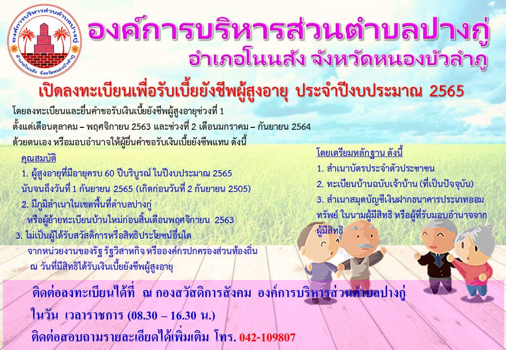 ประชาสัมพันธ์การลงทะเบียนเพื่อรับเบี้ยยังชีพผู้สูงอายุ ประจำปีงบประมาณ 2565