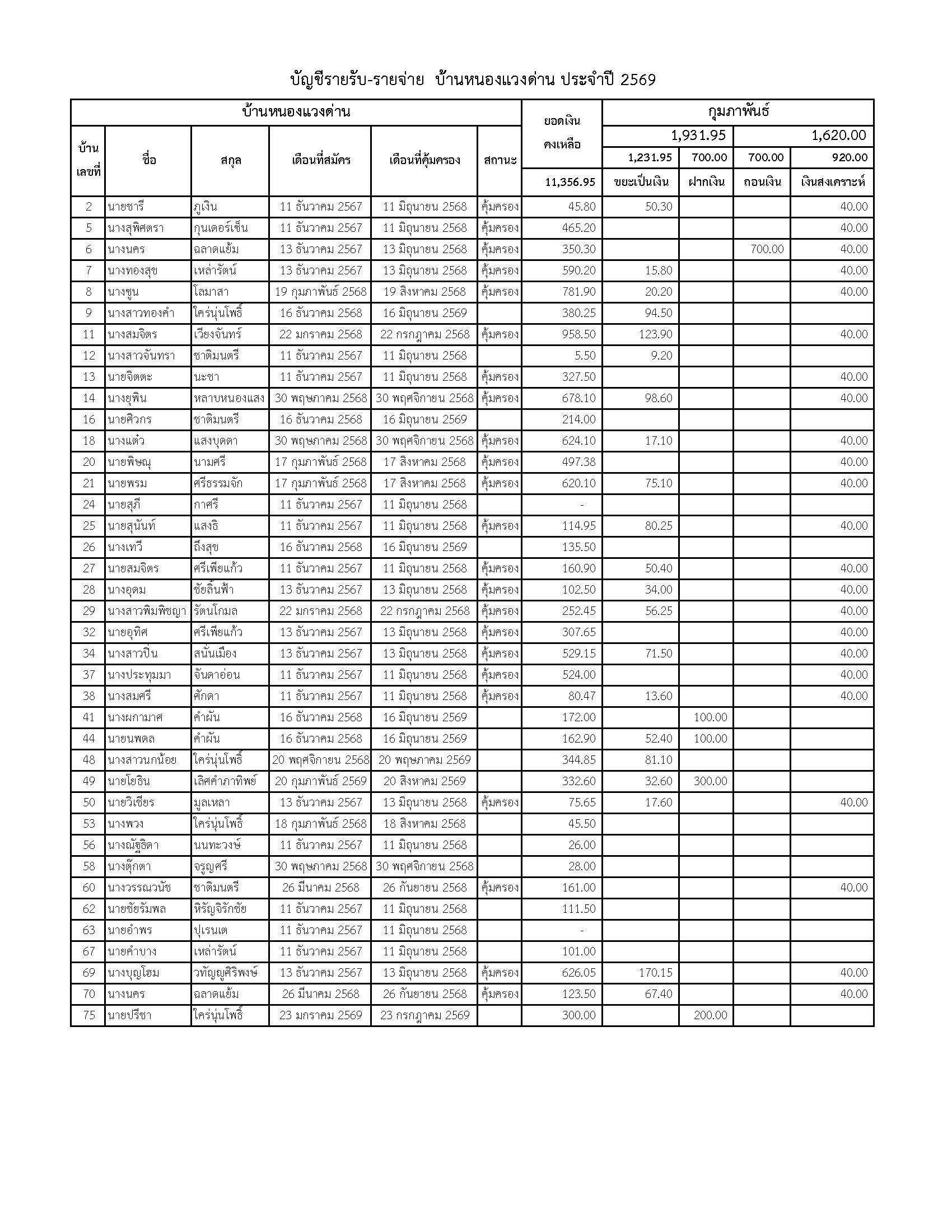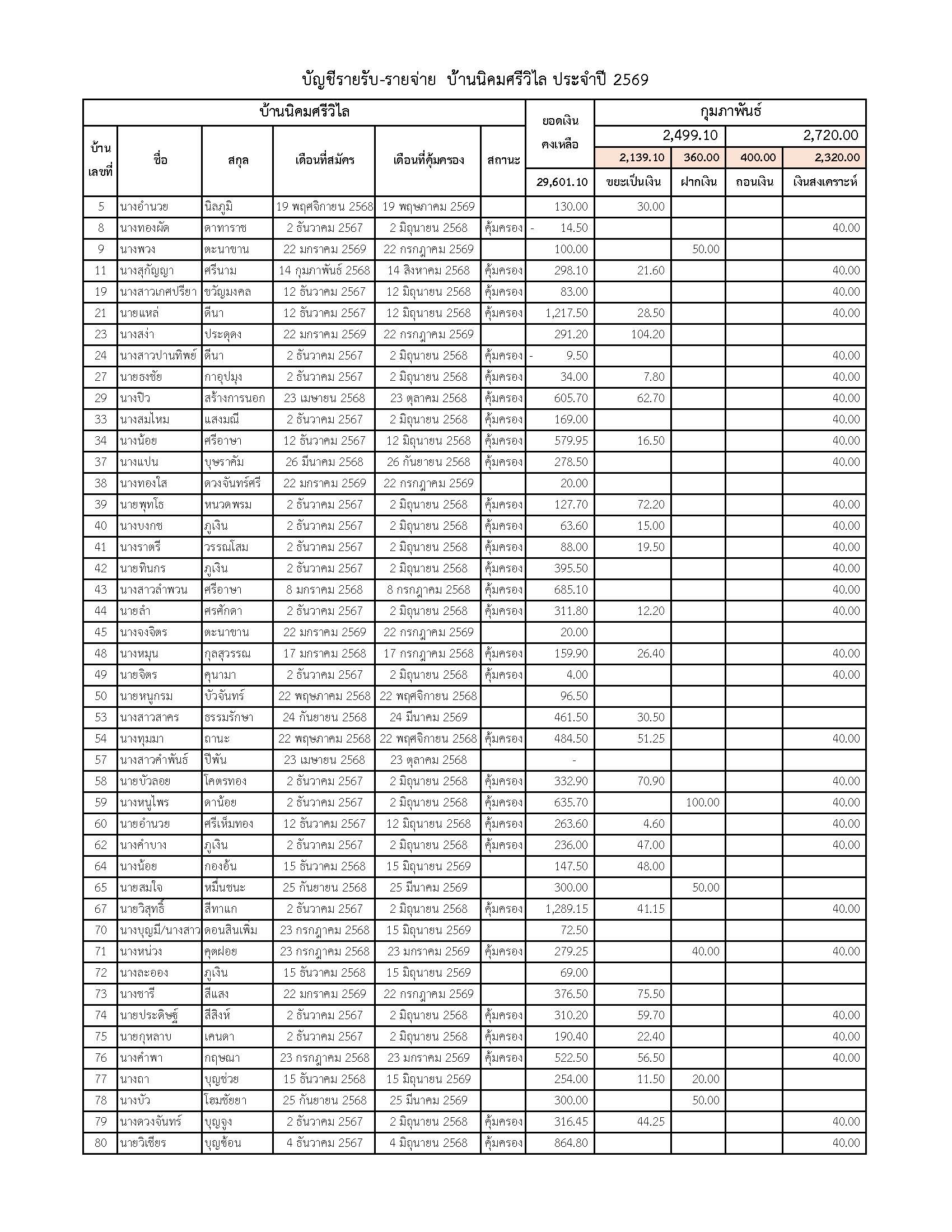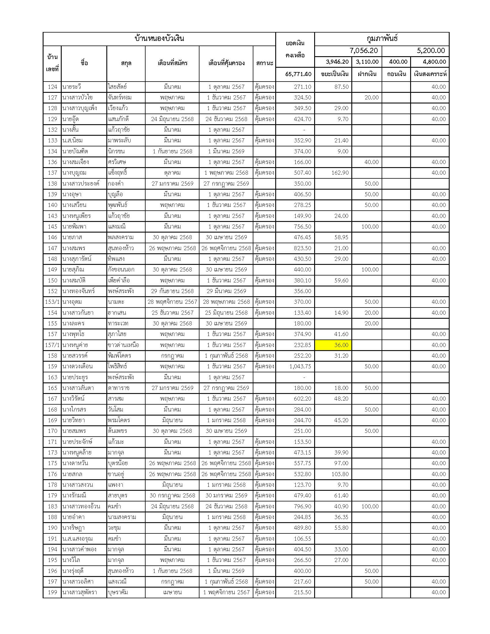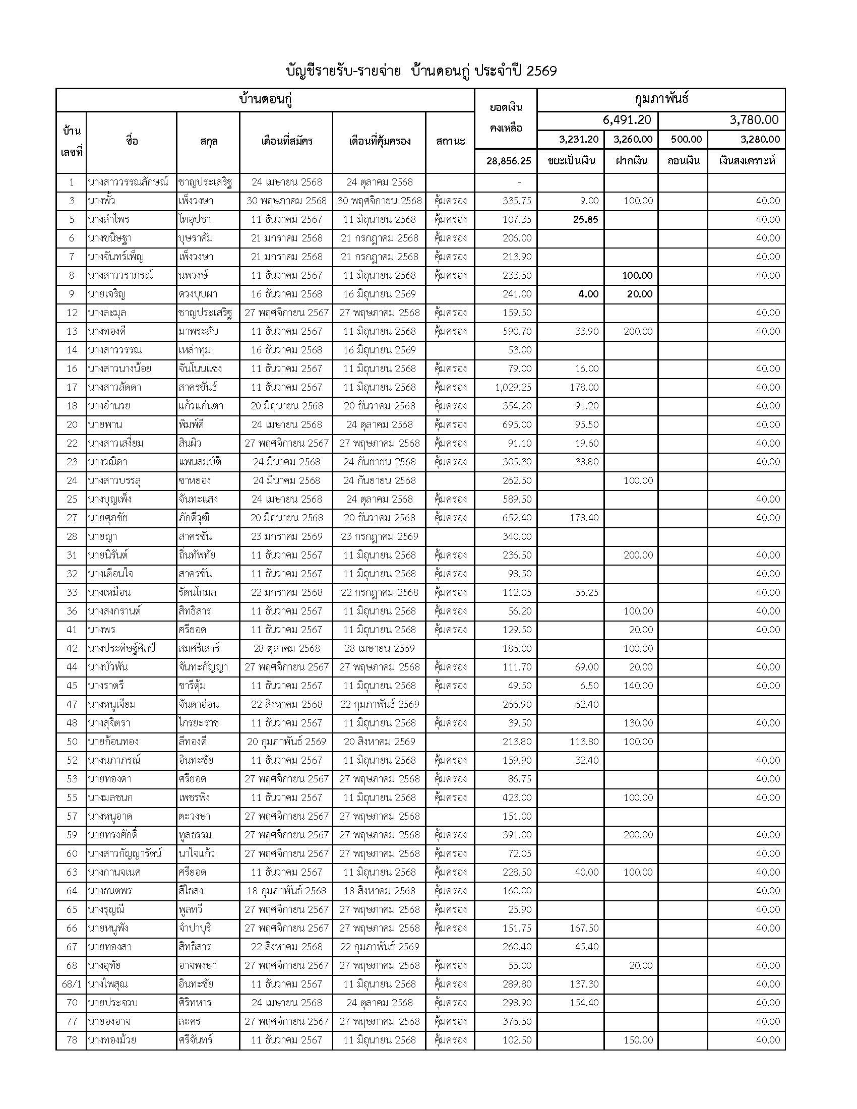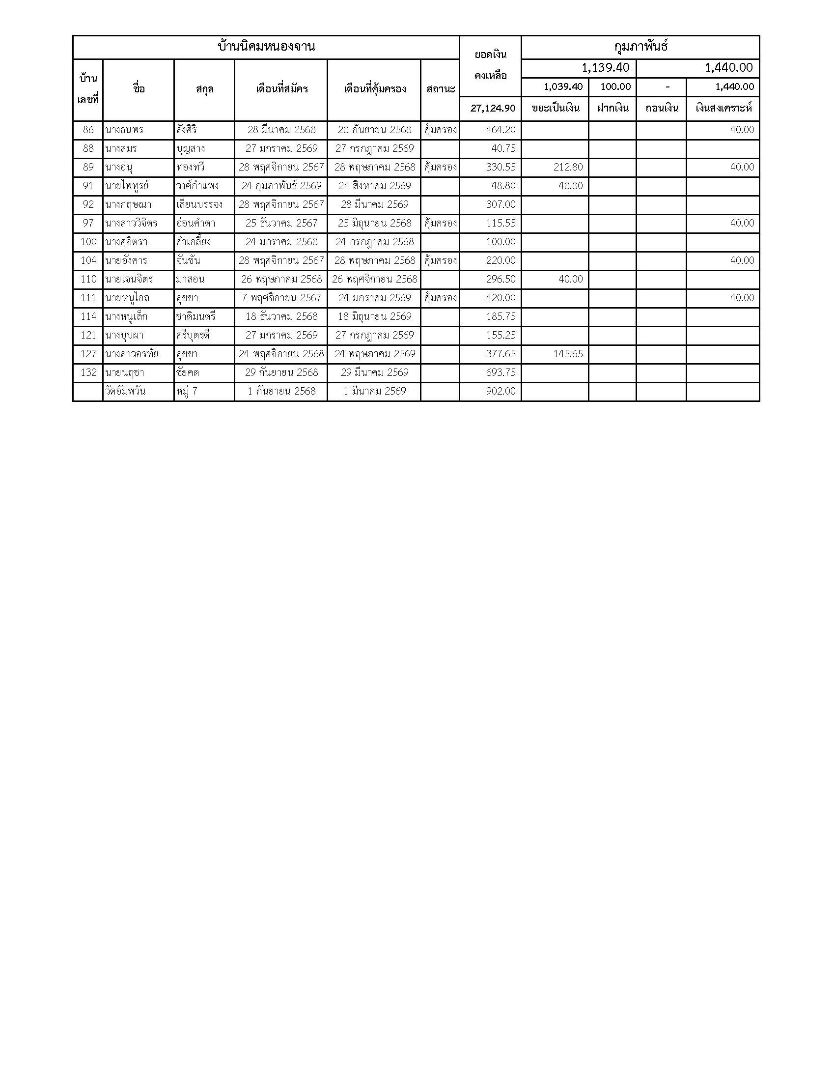 ยอดรับซื้อขยะ ประจำเดือนกุมภาพันธ์ 2569