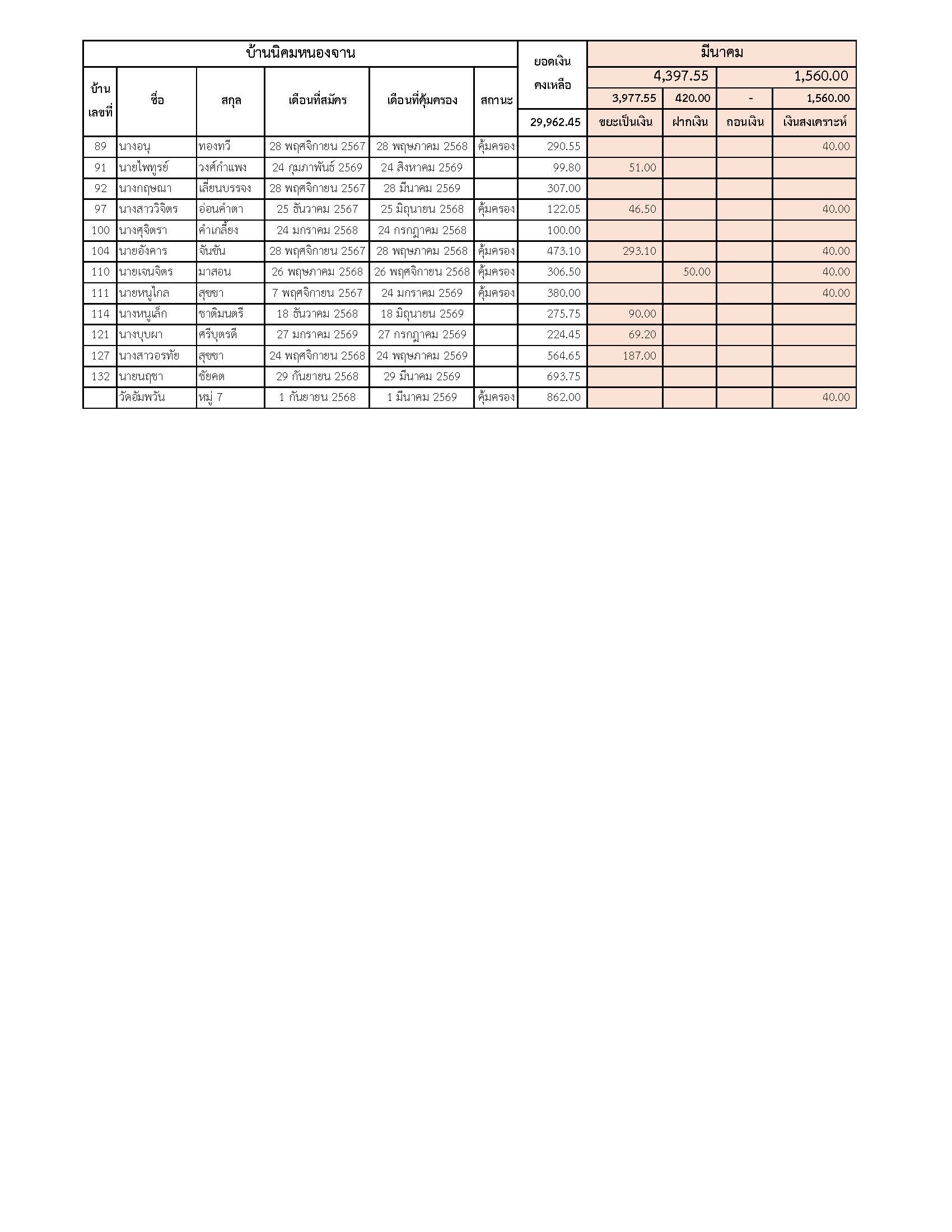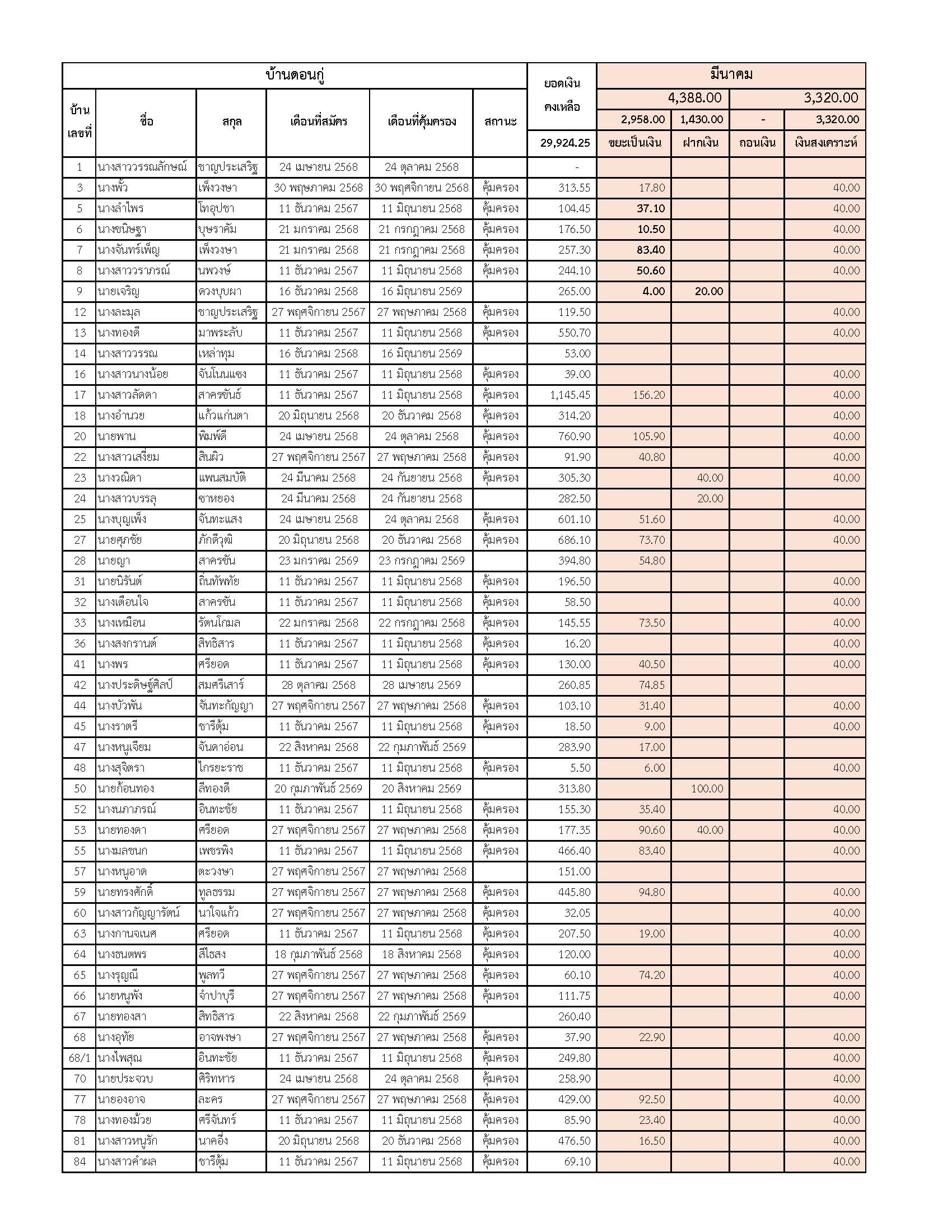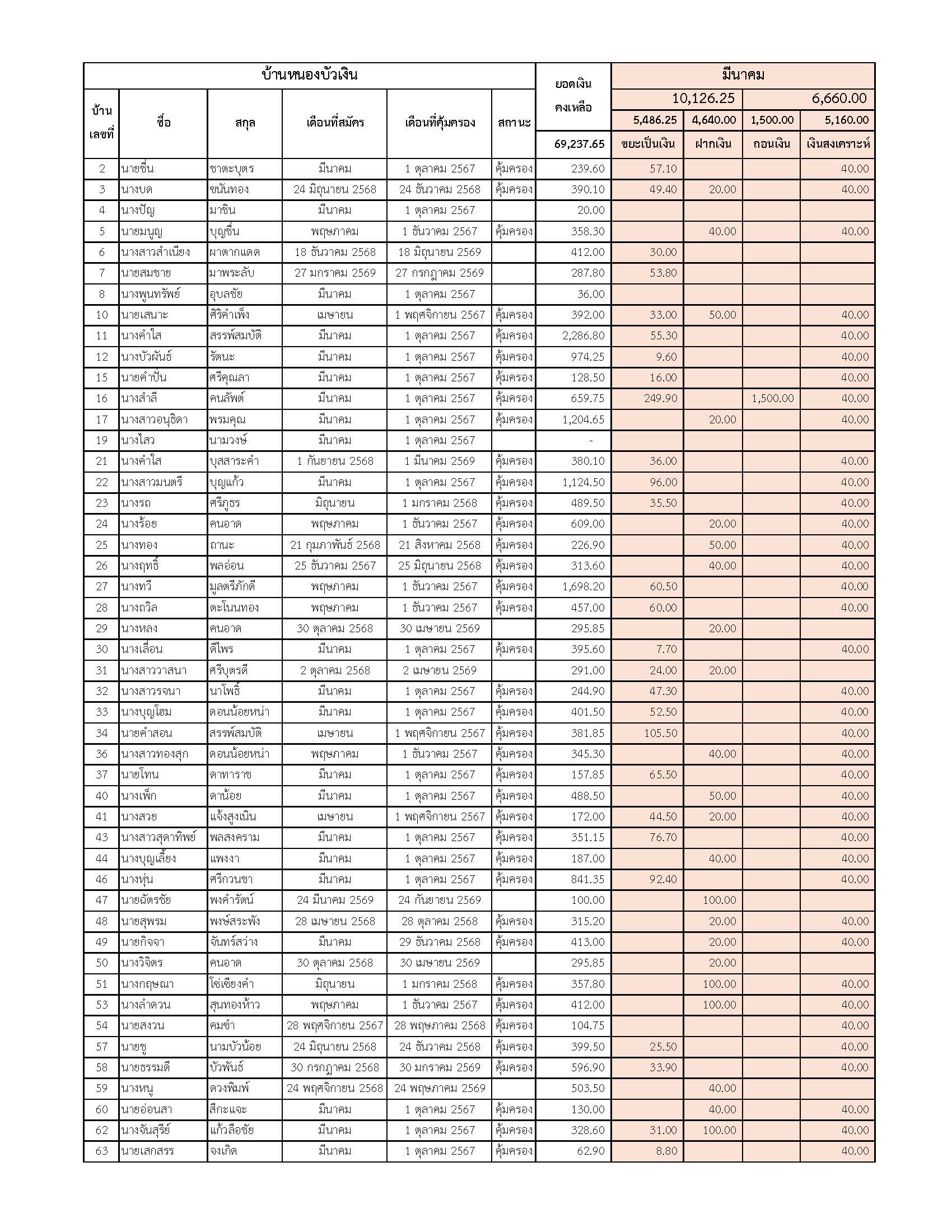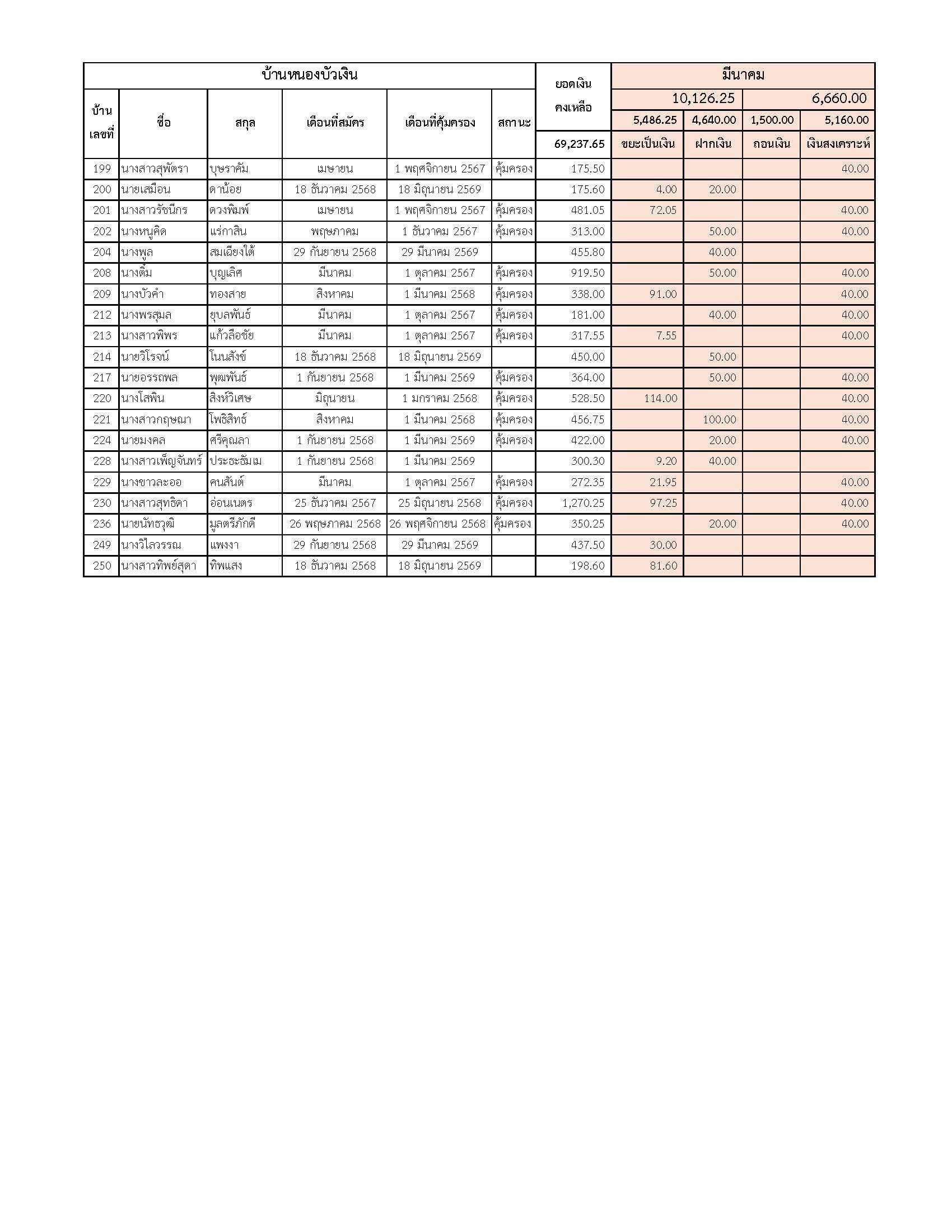 ยอดรับซื้อขยะ ประจำเดือนมีนาคม 2569