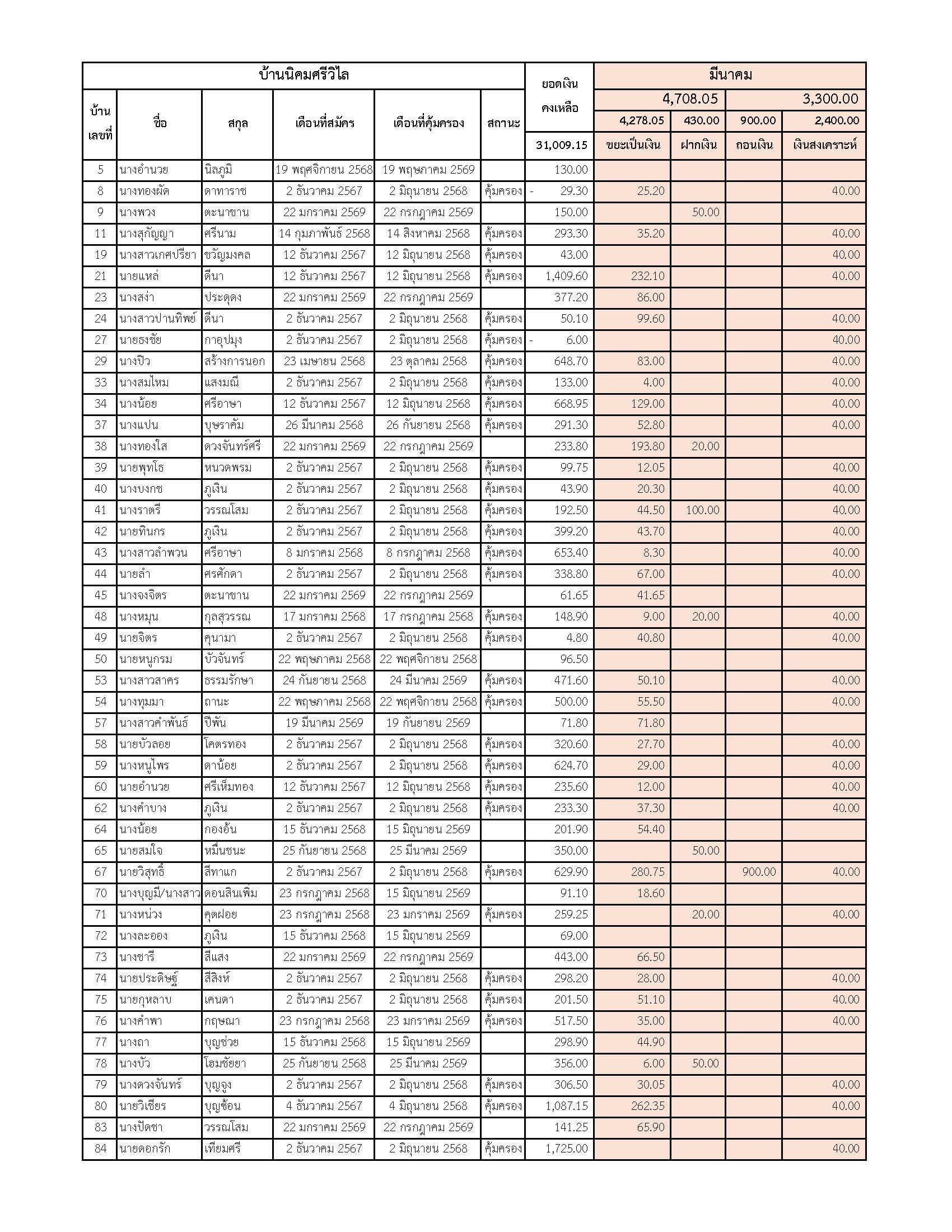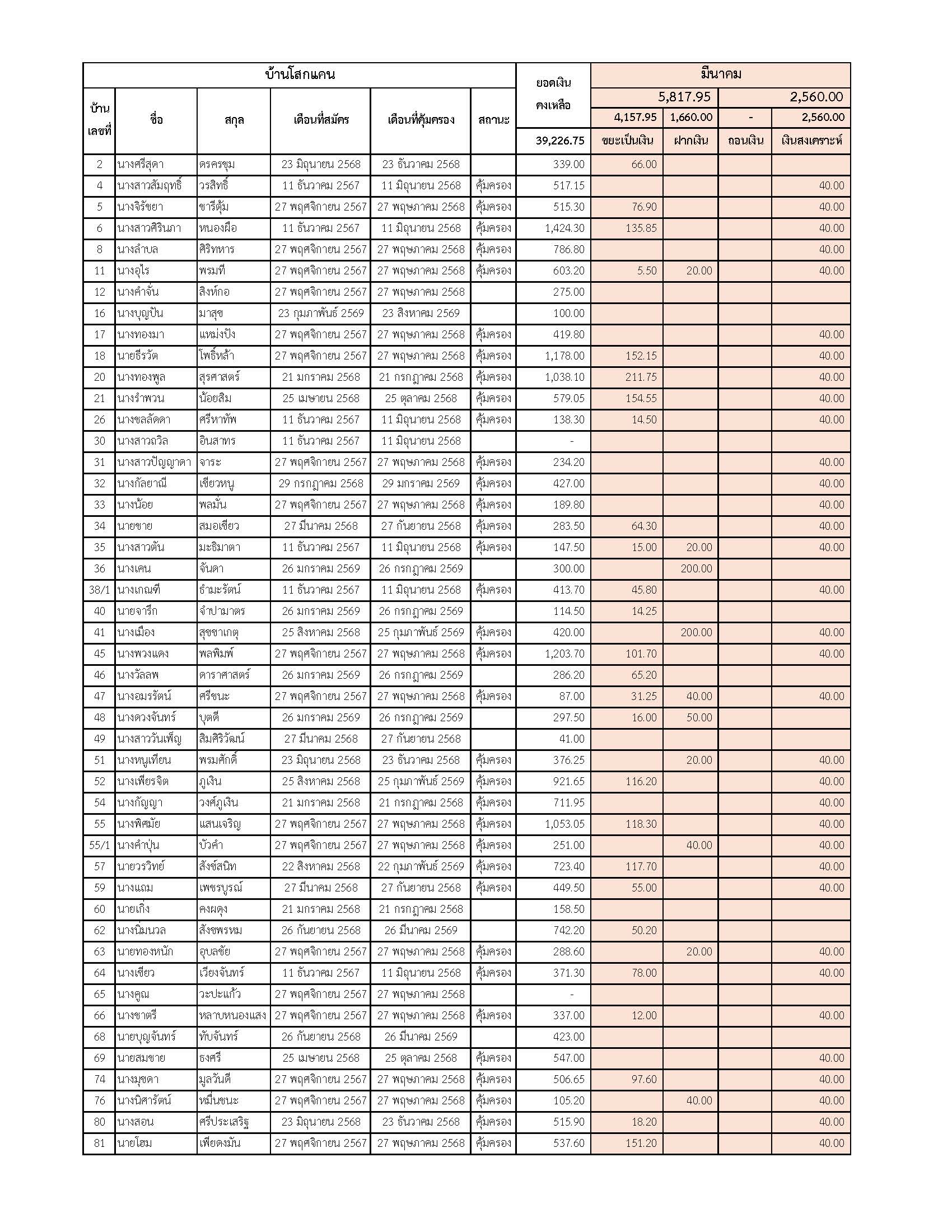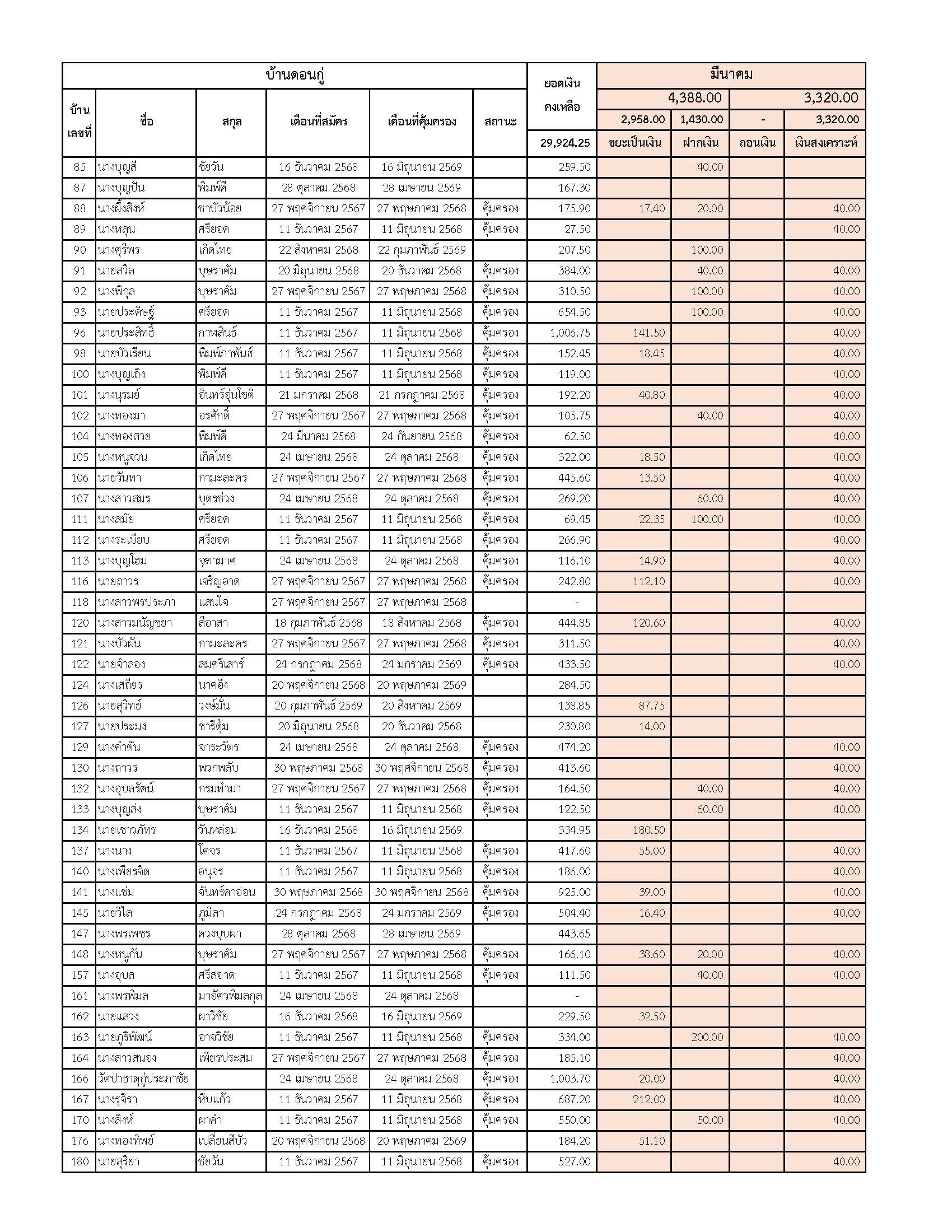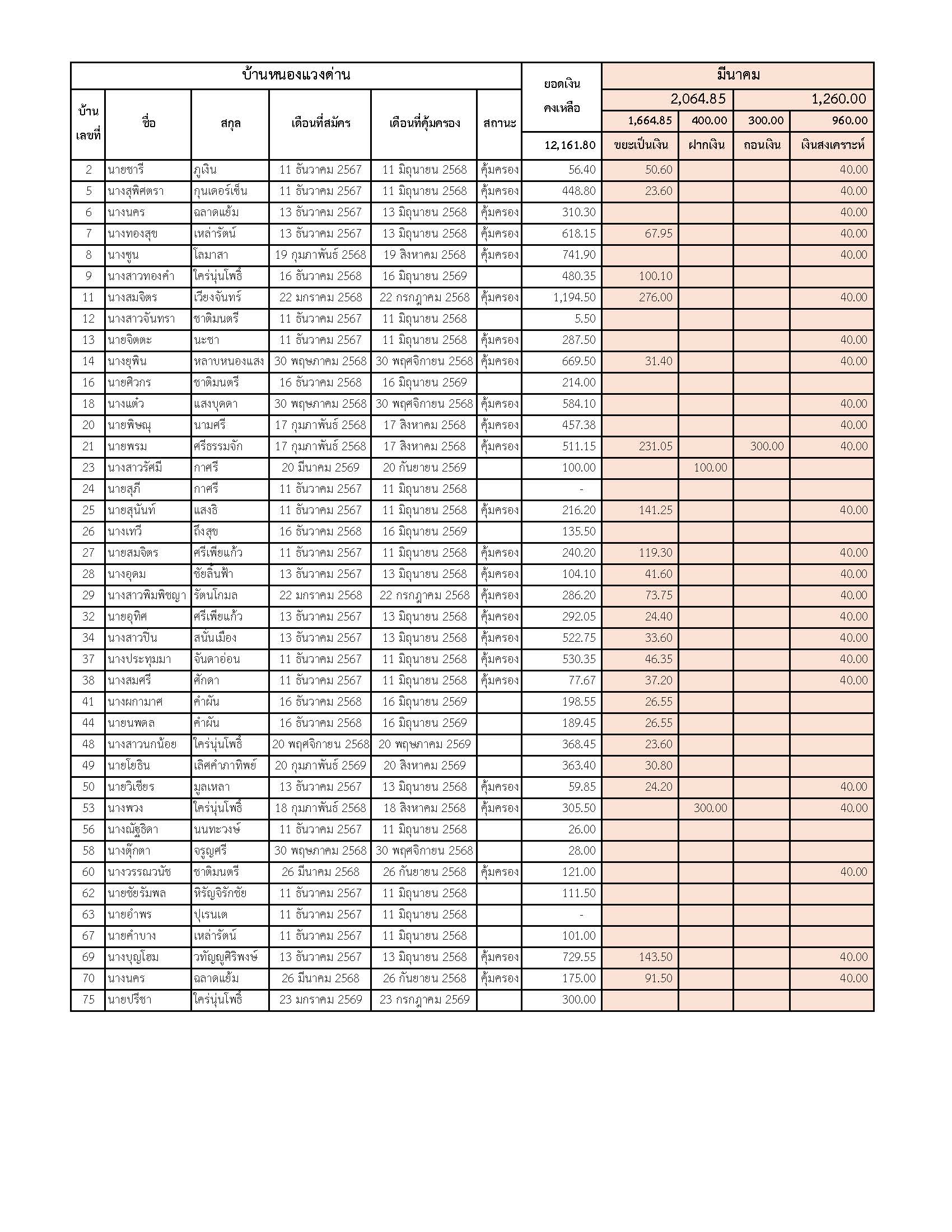 ยอดรับซื้อขยะ ประจำเดือนมีนาคม 2569